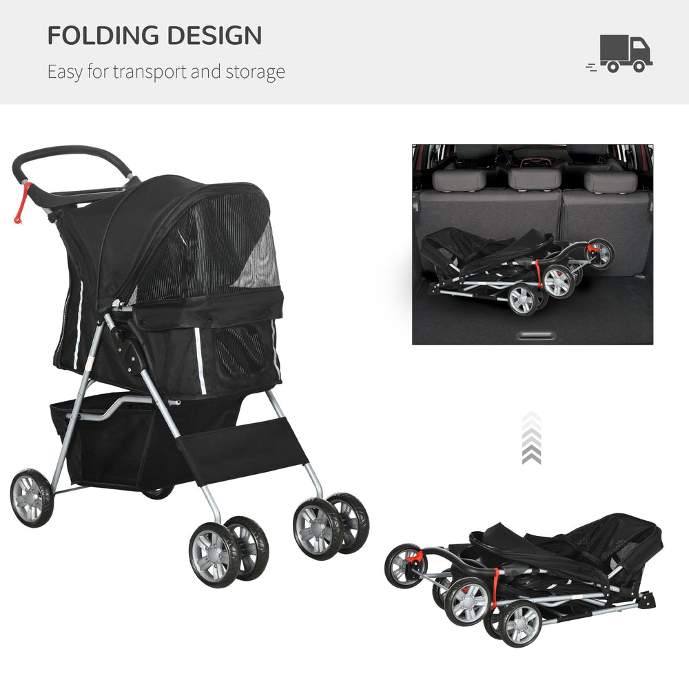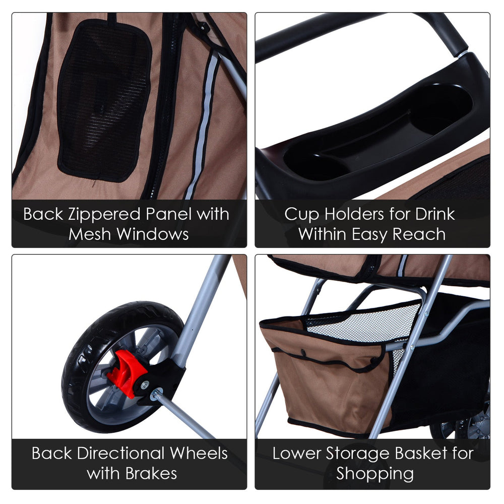 Dog Pushchair for Small Miniature Dogs Cats Foldable Travel Carriage with Wheels Zipper Entry Cup Holder Storage Basket