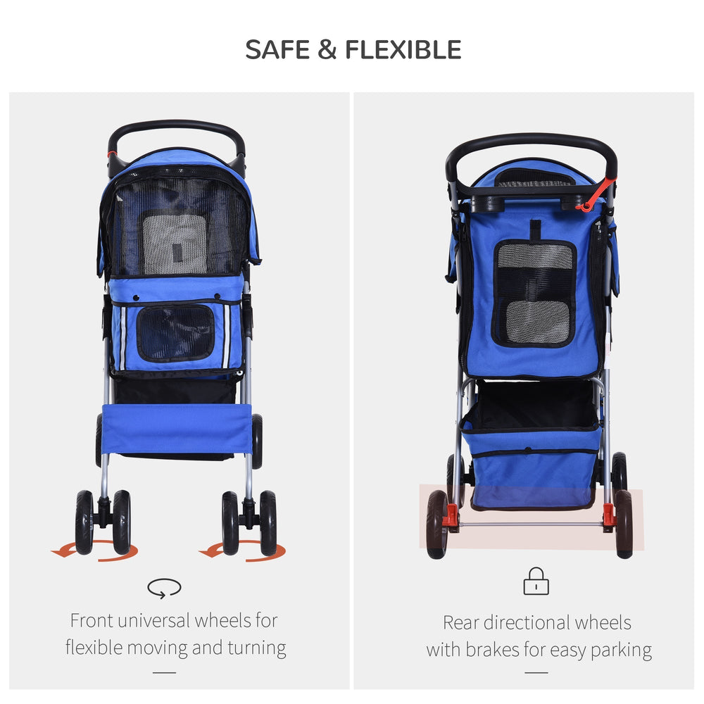 Dog Pushchair for Small Miniature Dogs Cats Foldable Travel Carriage with Wheels Zipper Entry Cup Holder Storage Basket - Blue is backordered and will ship as soon as it is back in stock.