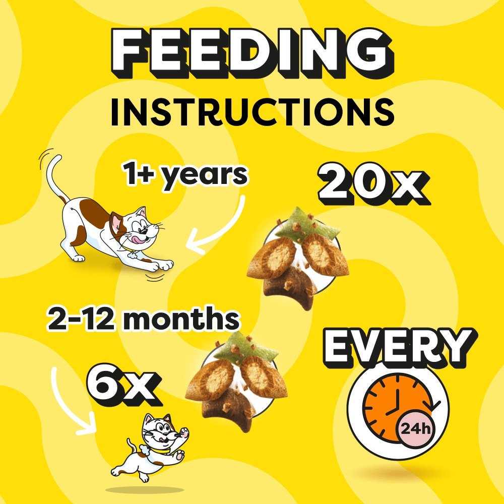Get ready for the Dreamies Shakeups Rockin' Roost Multivitamins Cat Treats in Poultry & Catnip Flavour. Cats everywhere are going wild since their favourite feathered flavours have been combined in one pack, with catnip on board. So go on, give the bag a shake and watch your cat come running to pounce! These treats are packed with vitamins and minerals, made from natural ingredients, have only 2 kcal each, and are irresistible to cats and kittens. With a crunchy outside and soft inside, they're bound to be a hit.