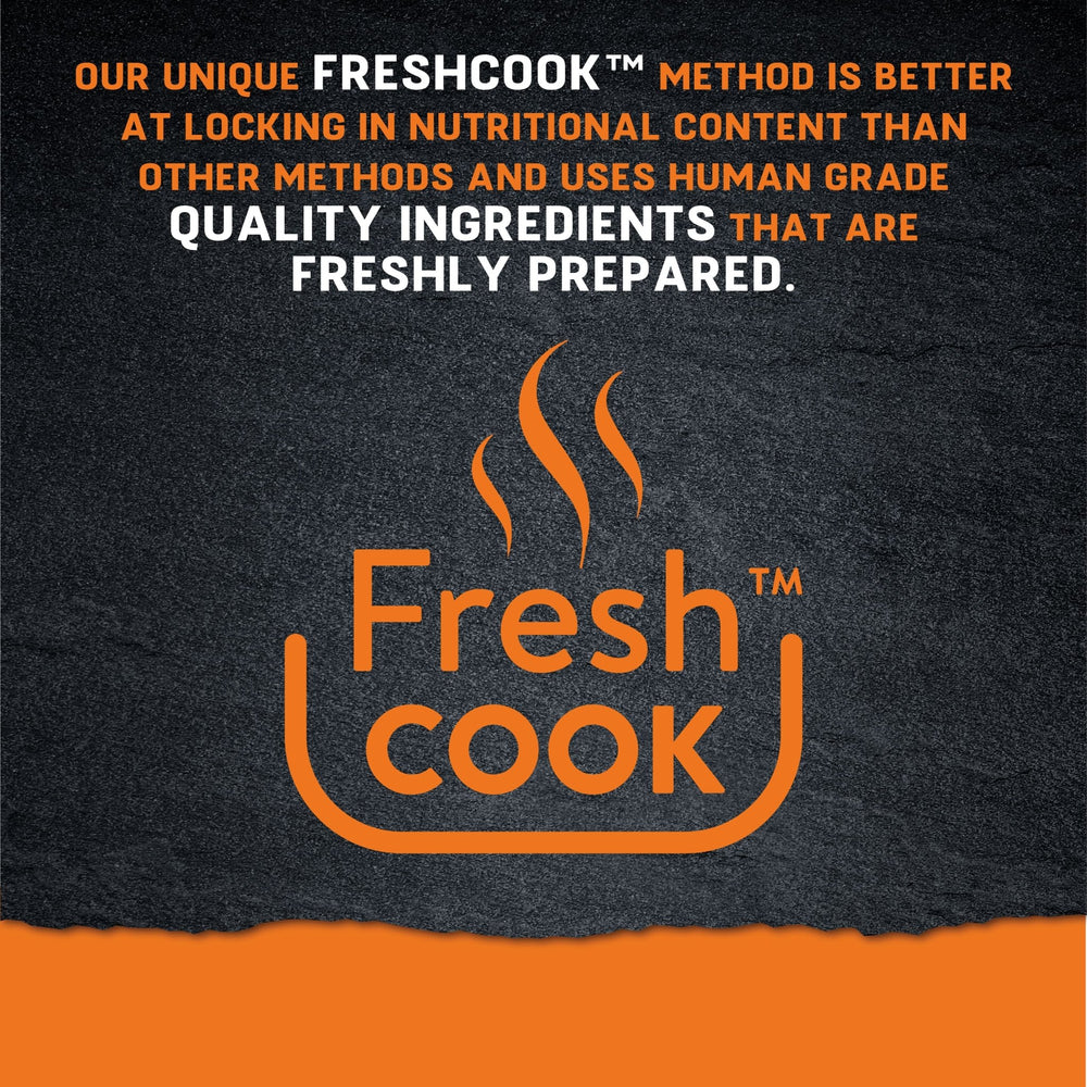 Freshly Prepared Lamb 70%, Peas (6%), Sweet Potato (4.2%), Potato (4%), Vitamins & Minerals, Salmon Oil (0.2%), Vegetable Stock (0.2%).