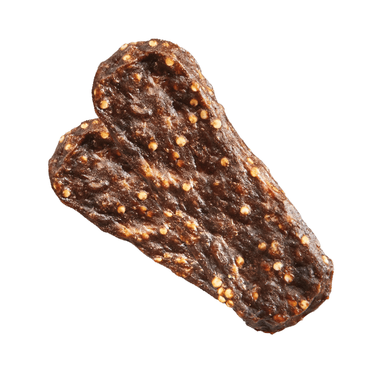 Beef (75%) Glycerine Pea Protein Quinoa (4%)Distilled White Vinegar Minerals Dried Spinach (4%) Red Beet Powder Flaxseed Dried Sweet Potato (0.1%) Orange Zest Vegetable Oil