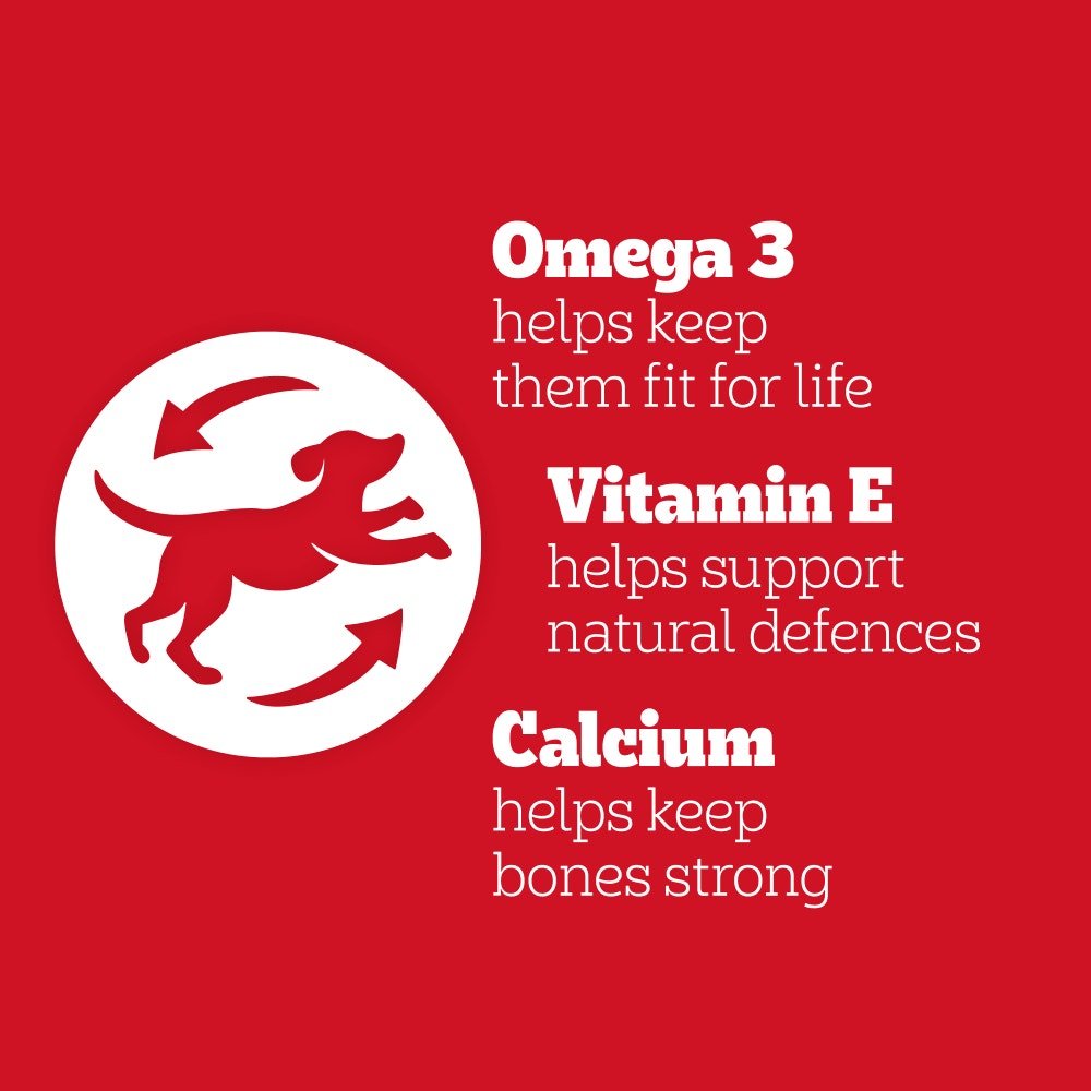 Pedigree Rodeo with Chicken Adult Dog Treats are chewy snacks with less than 5% fat per 100g. These tasty treats feature a twisted shape that makes play and bonding enjoyable. They are perfect for training. Developed by nutritionists and vets at The Waltham Centre, Rodeo treats include Omega 3 to promote lifelong fitness, vitamins to support the immune system, and minerals like calcium to strengthen bones.