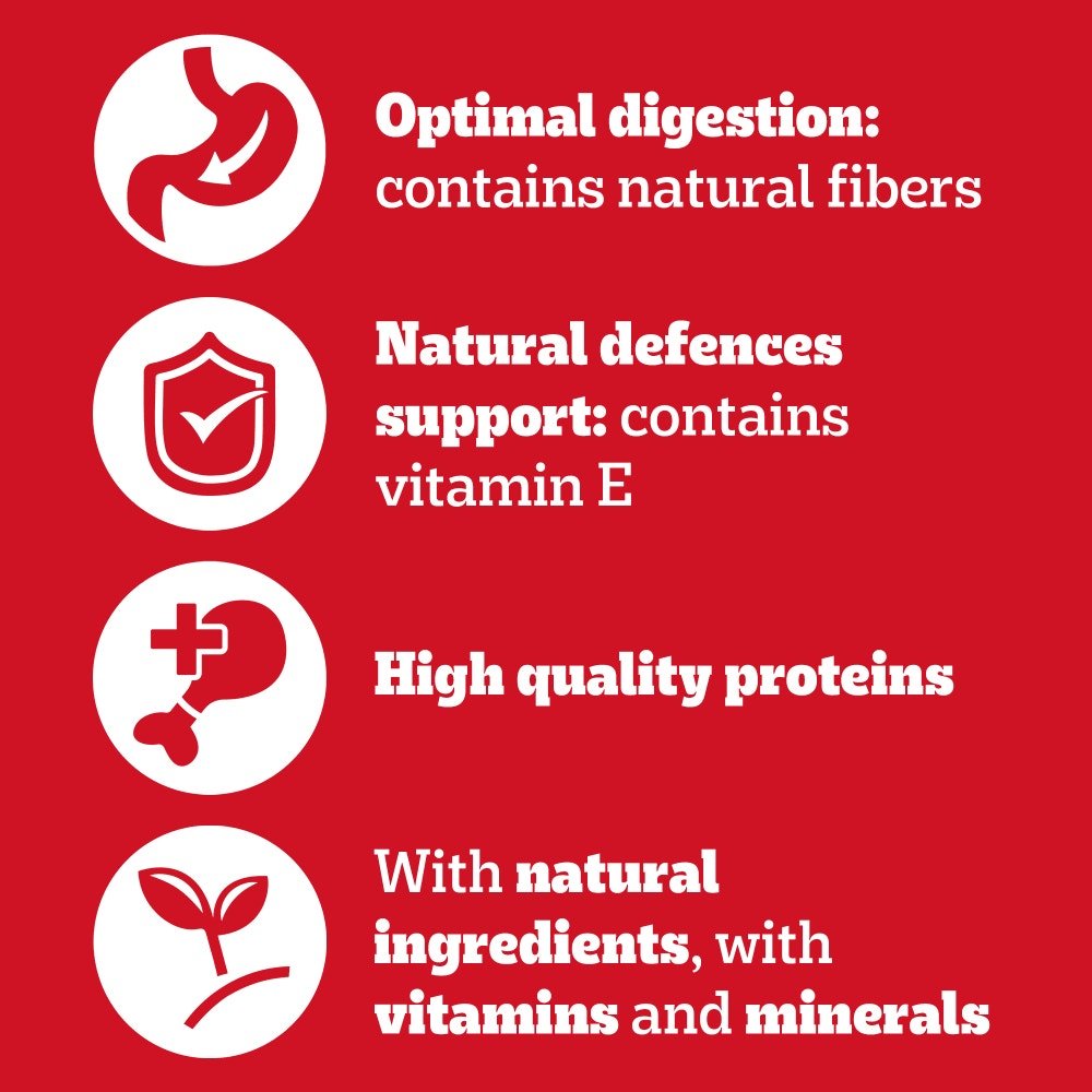 Made with natural ingredients and free from palm oil, this dog food contains no added sugars, artificial flavours, or preservatives. It features high-quality ingredients, including fibres from natural sources to promote optimal digestion. Each complete adult dog food recipe is fortified with Vitamin E, which supports your dog's natural defences. Your furry friend will love the tasty flavours of original, chicken and lamb in this delicious dog food loaf.