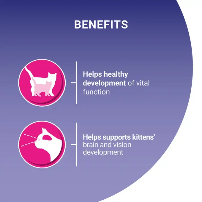 Purina One Kitten 1-12 Months Chicken Dry Cat Food is specially formulated to meet the nutritional needs of kittens (from weaning to 12 months) and pregnant or lactating cats. A balanced gut microbiome is crucial for your cat’s health and directly affects their natural defences. This microbiome is a unique ecosystem of trillions of microorganisms in each cat's gut. Maintaining a proper microbial balance promotes healthy digestion, boosts natural defences, and supports overall well-being. The product features PURINA ONE BIFENSIS, a probiotic containing Lactobacillus, which has been scientifically shown to strengthen your cat’s immune system and promote a healthy gut microbiome. Additionally, it includes high-quality ingredients like chicory prebiotic, which nourishes beneficial bacteria in the gut, enhancing digestive health. With consistent feeding, you’ll see visible improvements in your cat’s digestion, immune function, and coat shine, contributing to their health today and in the future.