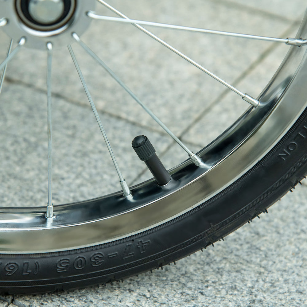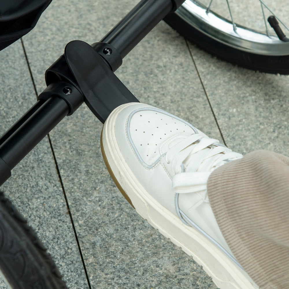 - Three large rubber wheels, suitable for all terrains. The front wheel is lockable.